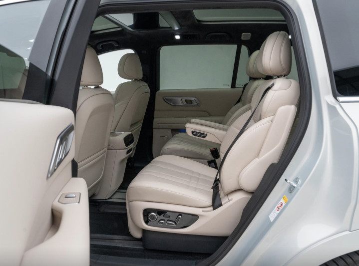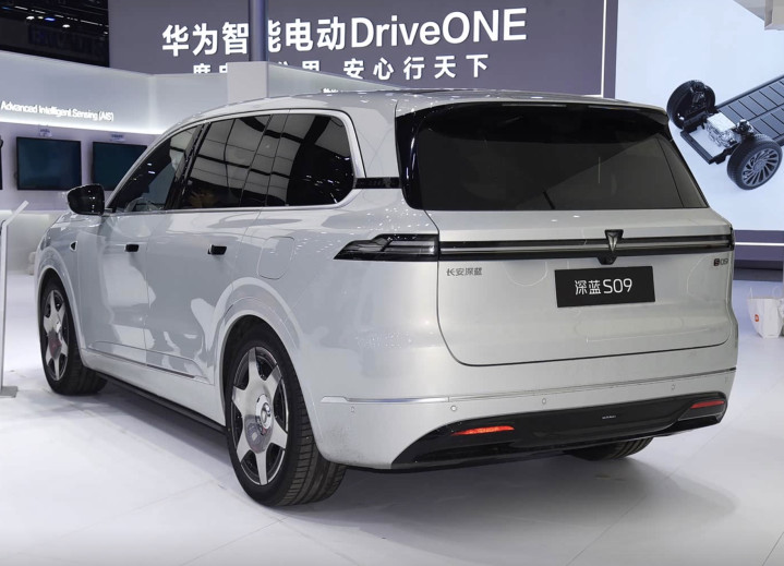 外观方面,深蓝S09超长续航超充版延续了家族式的设计语言,整体造型大气且富有科技感。前脸采用分体式灯组,与大尺寸的进气格栅相得益彰,展现出SUV车型的霸气。车身侧面,流畅的线条勾勒出修长的车身,5205mm的车长和 3105mm的轴距,使其拥有宽敞的内部空间。车尾部分,贯穿式的尾灯设计与前脸相呼应,点亮后呈现出独特的视觉效果。后保险杠采用黑色包围,搭配贯穿式镀铬装饰条,增加了车尾的层次感。