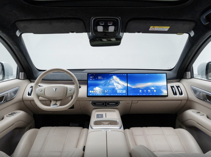 内饰设计上,深蓝S09超长续航超充版尽显豪华与科技氛围。车内采用双色搭配,新增的曙光橙和松木棕内饰配色,为消费者提供了更多个性化选择。中控台配备由15.6 英寸多媒体显示屏和 15.6 英寸副驾娱乐屏组成的连体式屏幕,显示清晰,为驾乘人员带来丰富的娱乐和信息交互体验。同时,43 英寸 AR - HUD 抬头显示系统,将重要信息直接投射在前挡风玻璃上,让驾驶者无需低头即可获取关键数据,提升了驾驶安全性。此外,新车还搭载了华为鸿蒙 Space 座舱和华为乾崑 ADS 4 辅助驾驶系统,这无疑是其一大亮点。不仅可实现私家电影院、臻享音乐厅、家庭K 歌房等多种使用场景,也能为驾驶者提供可靠的辅助,提升驾驶的安全性和便利性。